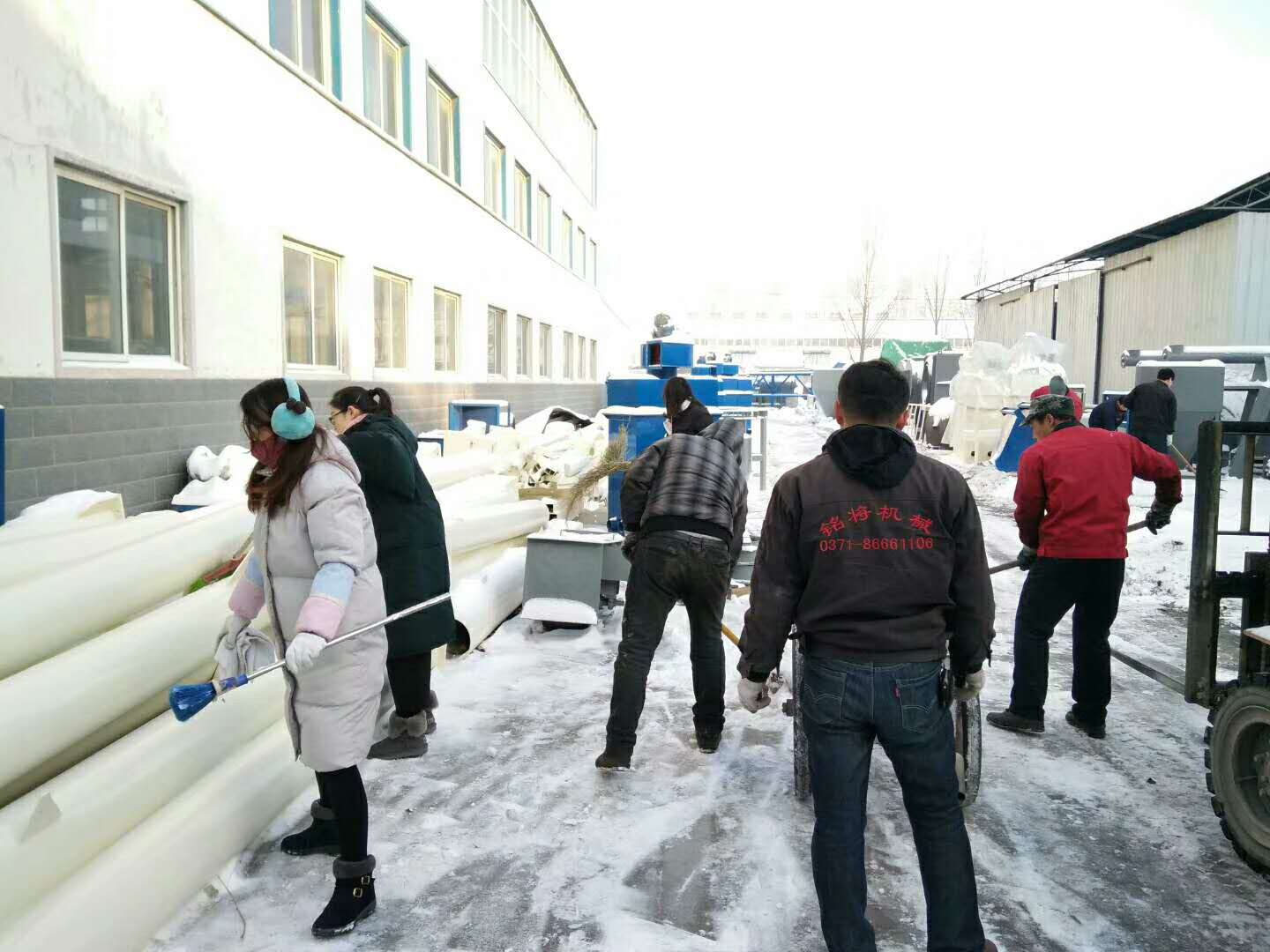 這場雪持續(xù)一天一夜,整裝待發(fā)的設備上蓋著厚厚的一層雪,為了不耽誤客戶的工期,正常發(fā)貨,一大清早銘將全體員工集體出動,清掃設備上的雪,大家不怕嚴寒,始終飽含工作熱情和高昂的斗志,有力的為塞爾維亞的正常發(fā)貨做好準備。